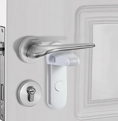 Odklej naklejkę, oczyść miejsce w któym chcesz założyć blokadę, przyłóż, przytrzymaj puść, i włala, blokada zamontowona, i teraz będą spokojne wieczory bez wbijania rodziców do pokoju